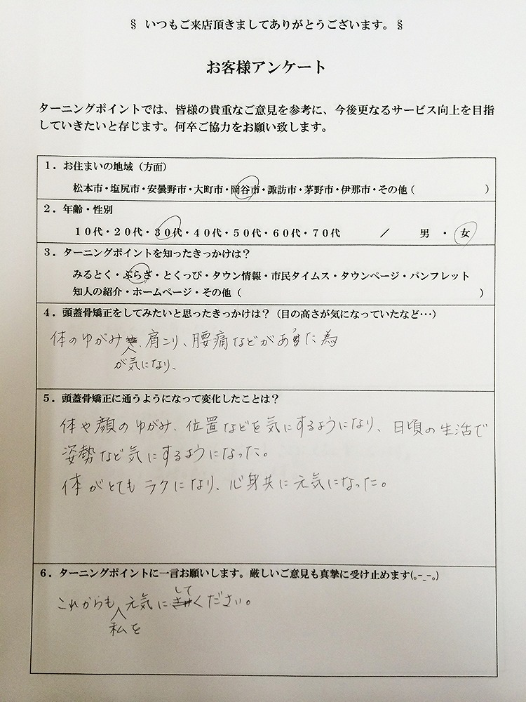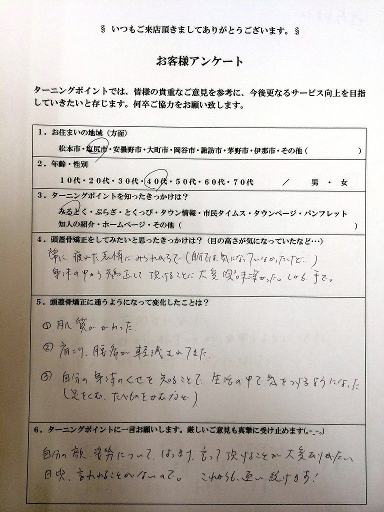 ・首や頭が痛くなっていたけど(以前は)ここにくると楽になります。